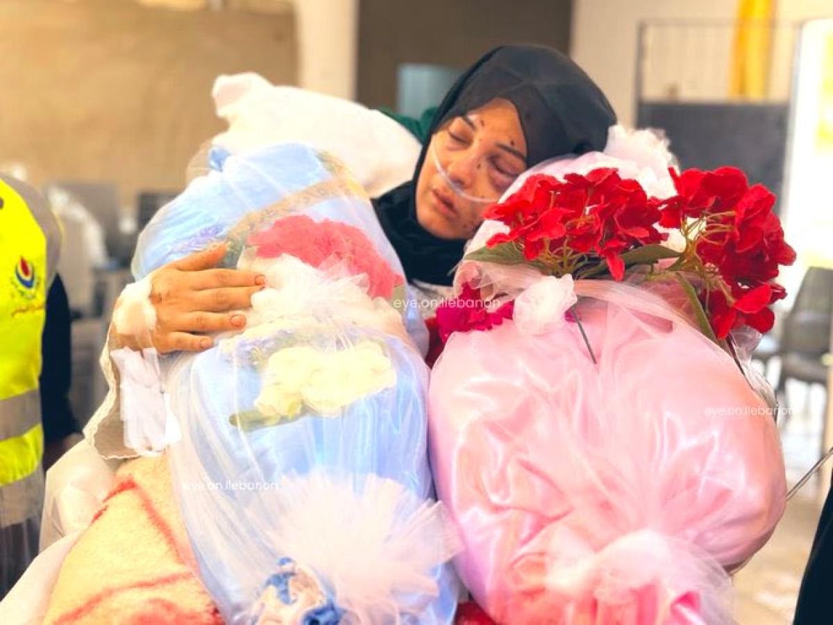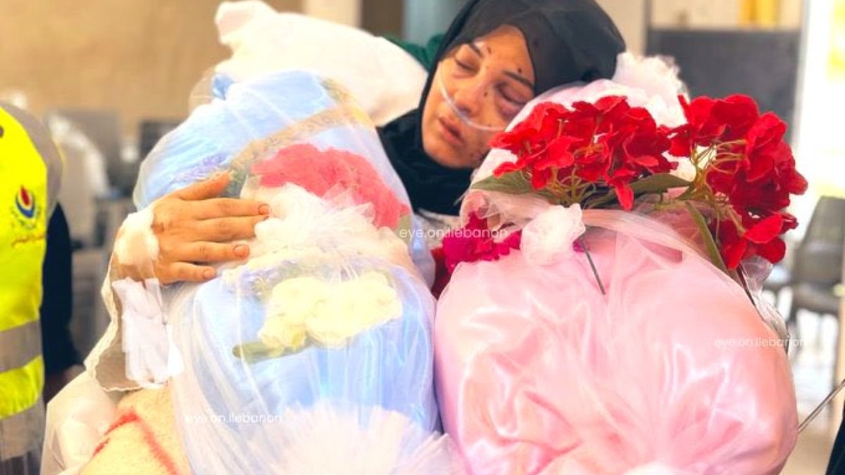 Anne, İsrail tarafından katledilen evlatlarına yaralı haliyle son defa sarılıyor..