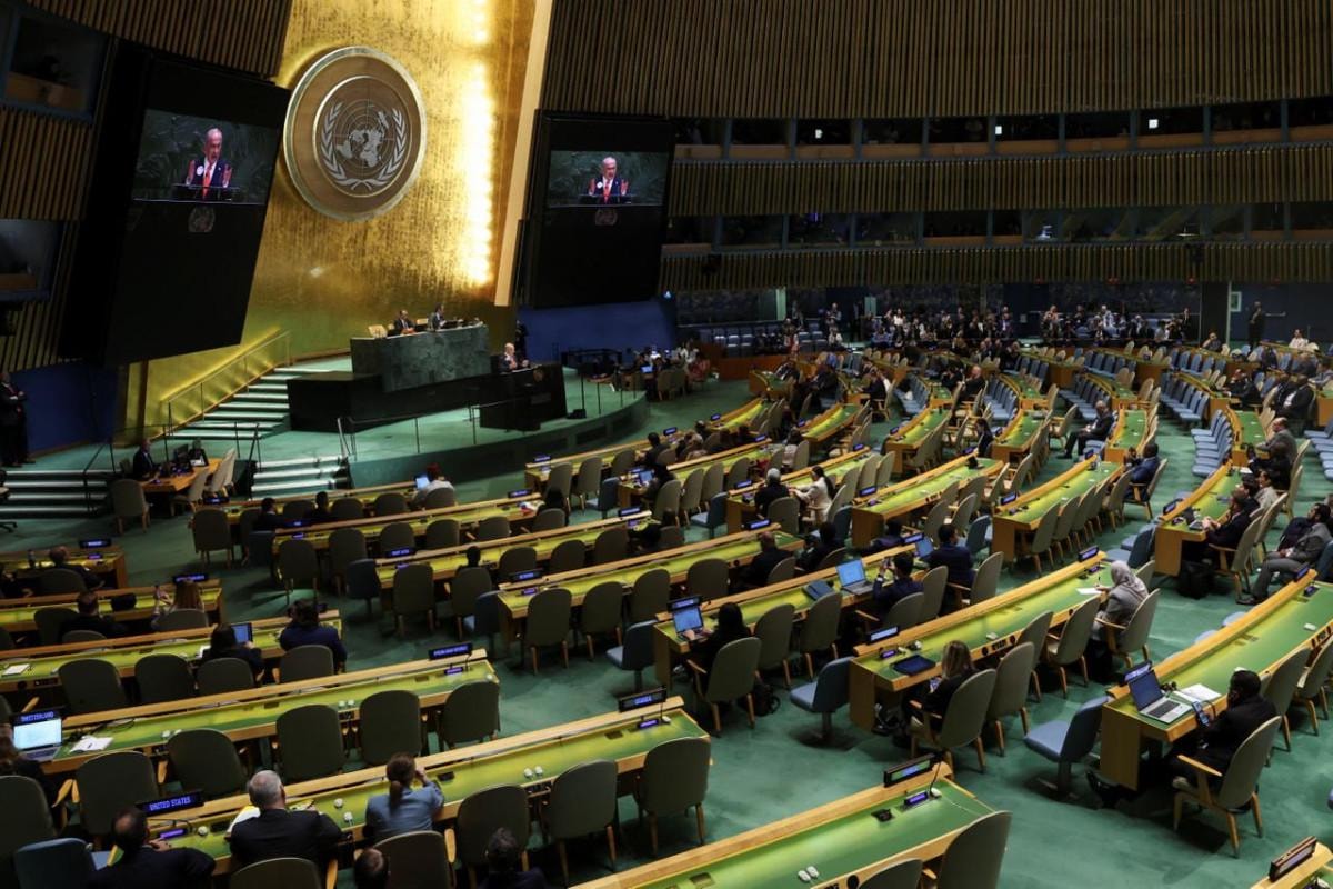 Gazze Şeridi'nde 7 Ekim 2023'ten bu yana düzenledikleri saldırılar ve insani yardım girişine yönelik engellemeler nedeniyle insanlık felaketinin yaşanmasına neden İsrail'in Başbakanı Netanyahu, BM Genel Kurulu'nda tepkiyle karşılaştı.