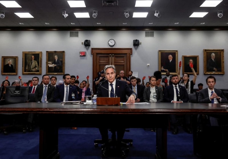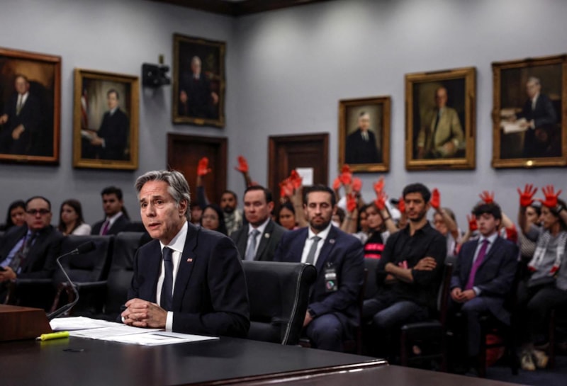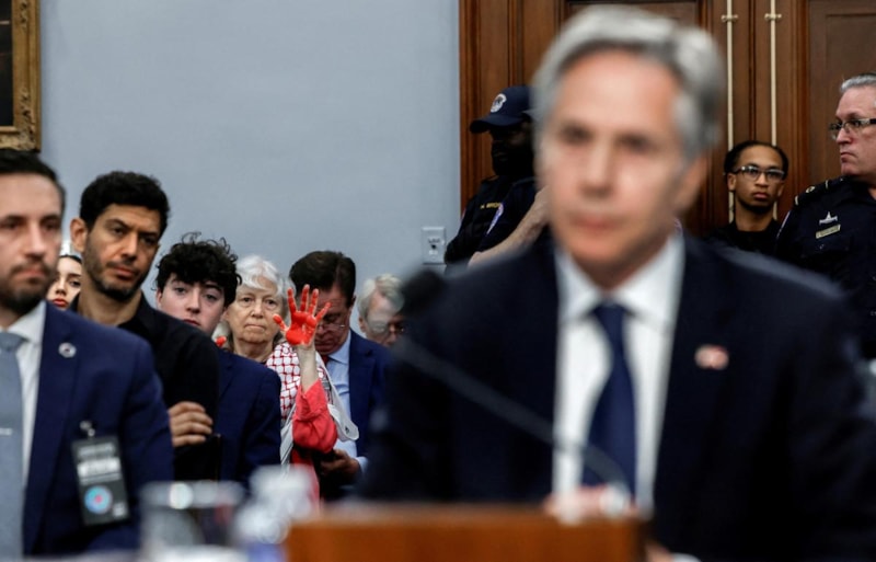 Öte yandan, Temsilciler Meclisindeki oturum devam ederken Blinken'ı ve ABD yönetimini protesto eden bazı göstericiler, "Gazze'deki soykırımdan Blinken'ın sorumlu olduğu" yönünde sloganlar attı.
