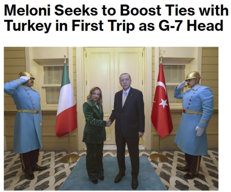 ABD merkezli Bloomberg, Başbakan Meloni'nin, G7 dönem başkanı olarak Ankara ile bağlarını güçlendirmeyi amaçladığını aktardı.