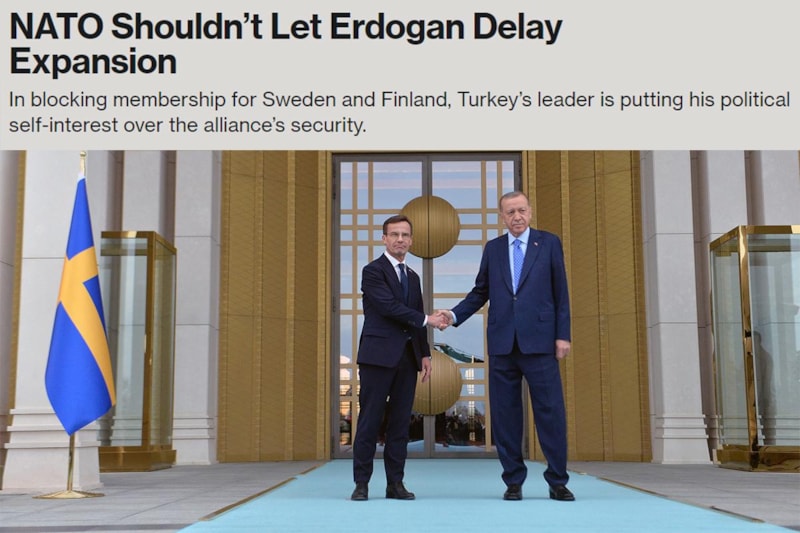 ABD merkezli yayın organı Bloomberg, "NATO, Erdoğan'ın genişlemeyi geciktirmesine izin vermemeli" başlıklı analizinde Türkiye'yi hedef aldı.