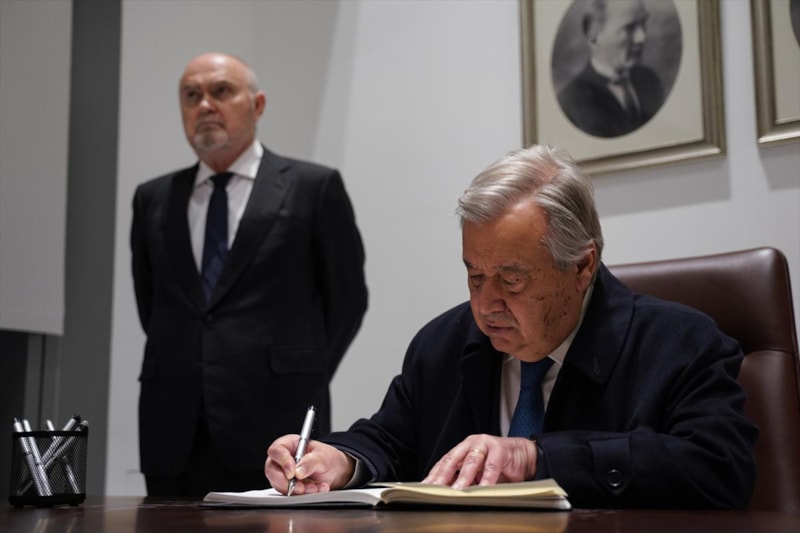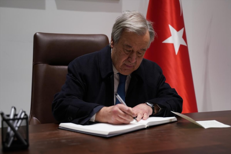 Kahramanmaraş merkezli depremler sonrası Birleşmiş Milletler (BM) Genel Sekreteri Antonio Guterres, New York'ta Türkiye'deki depremler için açılan taziye defterini imzaladı.