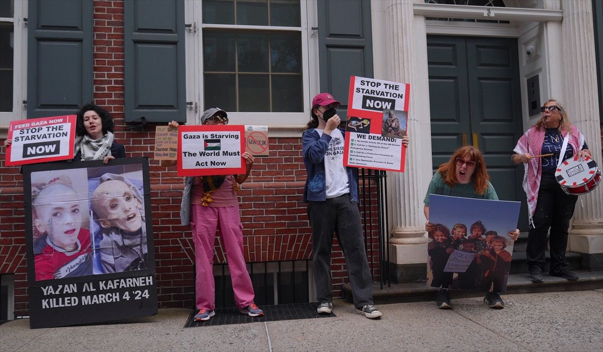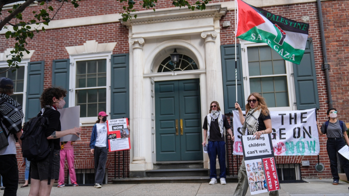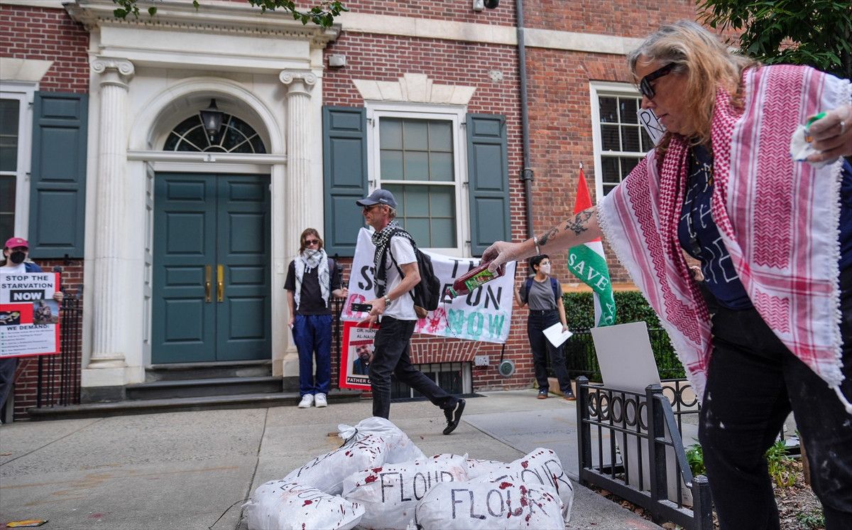 "Shut it Down for Palestine" isimli grubun üyeleri, Birleşmiş Milletler (BM) Genel Sekreteri Antonio Guterres’in New York'taki resmi konutunun önünde toplanarak gösteri düzenledi.