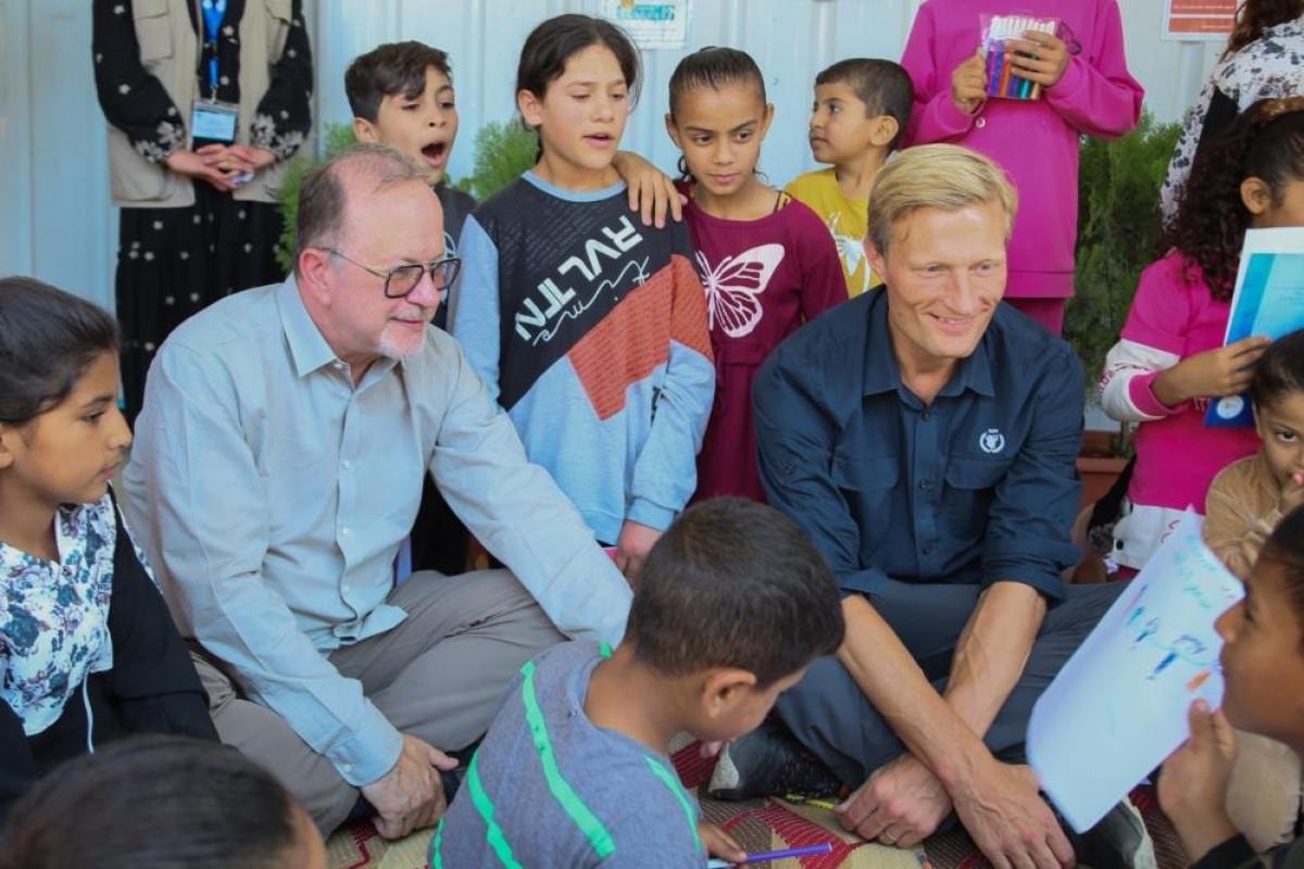 UNICEF İcra Direktörü Yardımcısı Ted Chaiban ve Birleşmiş Milletler'e (BM) bağlı Dünya Gıda Programı (WFP) İcra Direktörü Yardımcısı Carl Skau, Lübnan'ın doğusundaki Zahle kentinde çatışmalar nedeniyle göç eden ailelerin kaldığı okulu ziyaret etti.