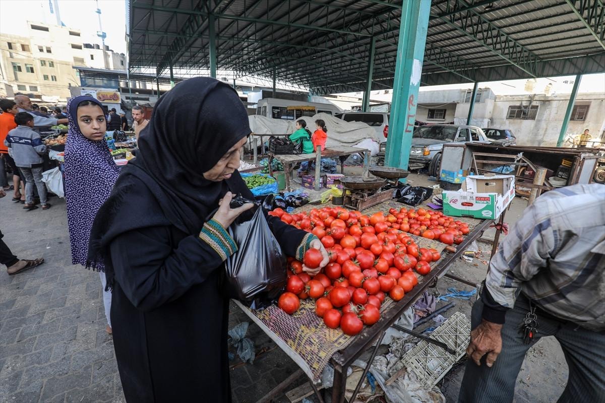 Filistinliler pazardan alışveriş yaparken görüntülendi.