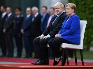 Johnson ve Merkel her iki ülkenin milli marşlarını Merkel’in kontrolsüz titremesi sebebi ile oturarak dinledi. Karşılamanın ardından heyetler halinde görüşmeye geçildi. Görüşmenin ardından basın açıklaması yapılacak.
