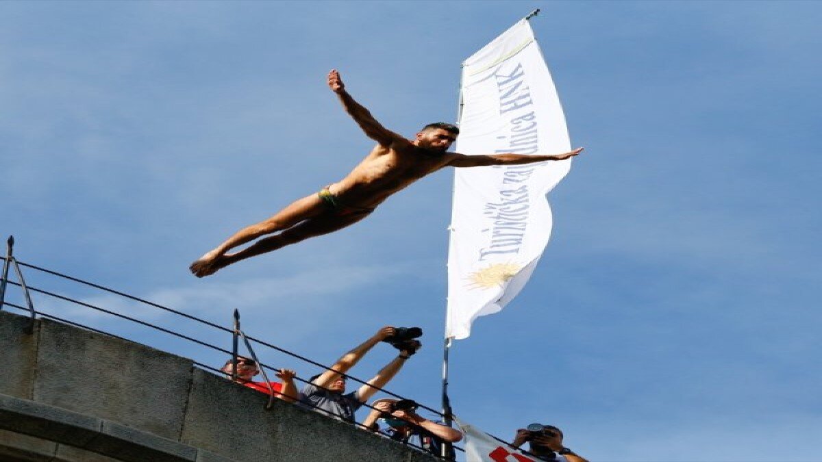 Mimar Sinan'ın öğrencisi Mimar Hayrettin tarafından 1566'da inşa edilen tarihi Mostar Köprüsü'nde düzenlenen atlama yarışlarında, 32 sporcu kendini 28 metre yükseklikten Neretva Nehri'nin zümrüt yeşili sularına bıraktı.