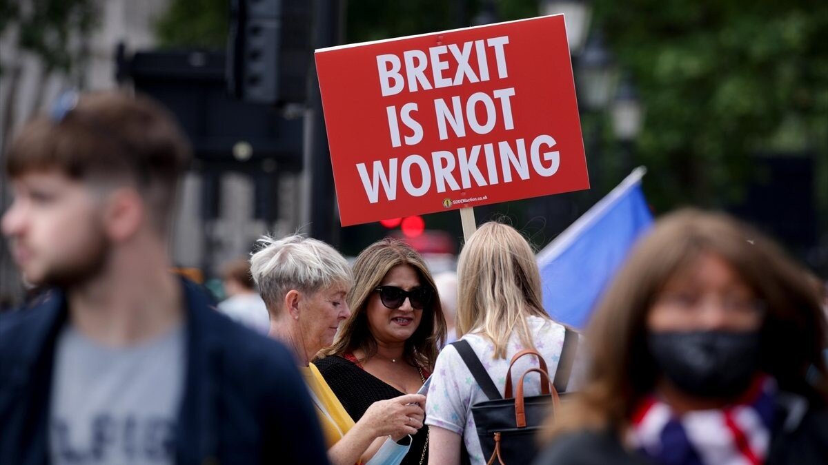 Brexit karşıtları, başkent Londra'daki parlamento binası önünde, AB'den ayrılma kararı olarak bilinen Brexit'in 5'inci yıl dönümü nedeniyle gösteri düzenledi.