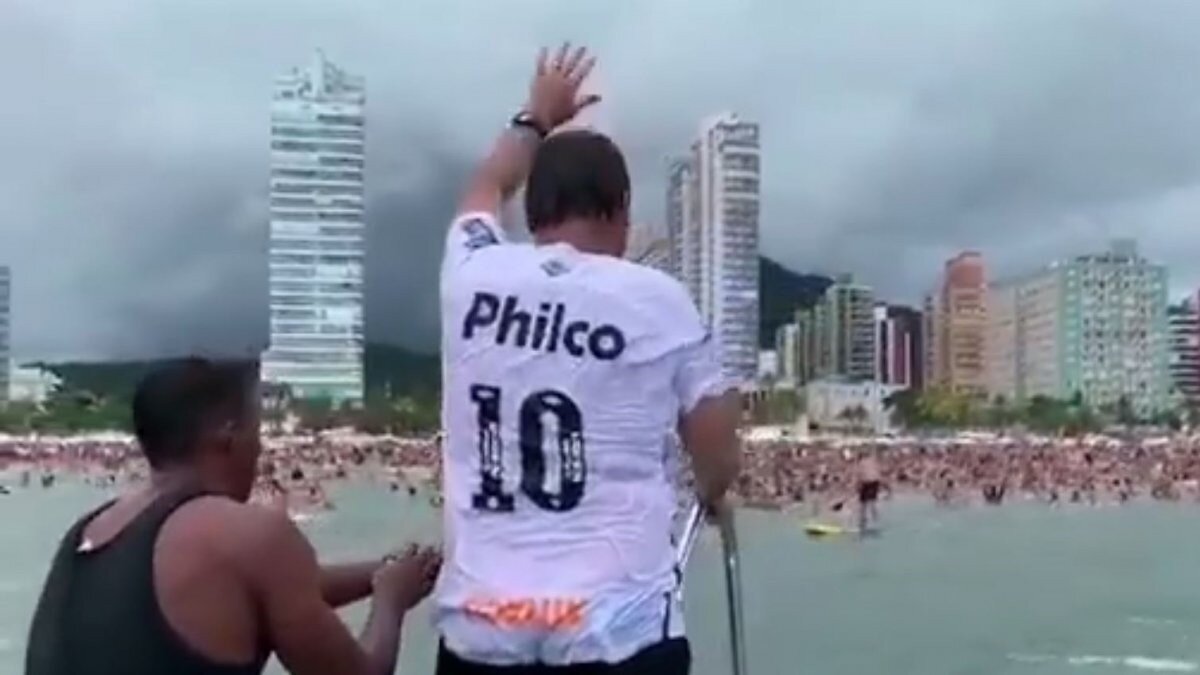 Bolsonaro, destekçilerinin coşkulu tezahüratları üzerine teknesinden denize atlayarak, yanlarına yüzdü.