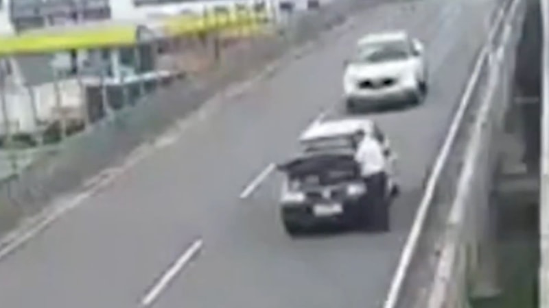 Şahıs, daha sonra kaputu açmak için aracından indi.