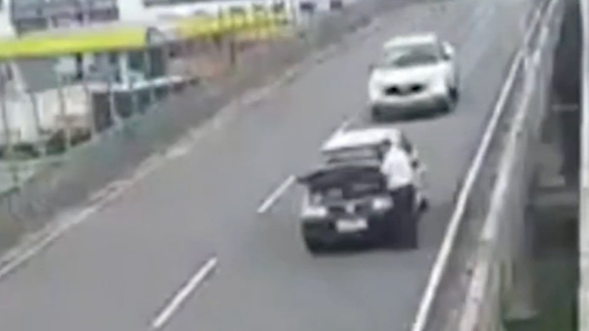 - Brezilya'da bir sürücü, aracının kaputunu açmak için durdu.