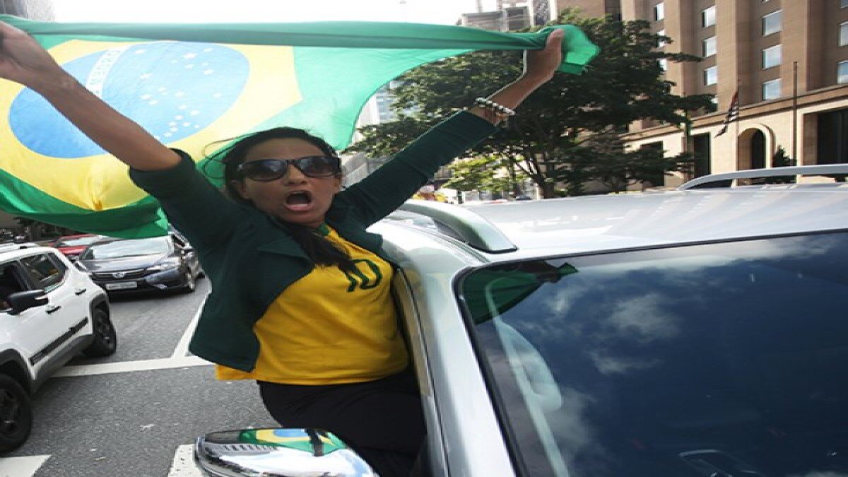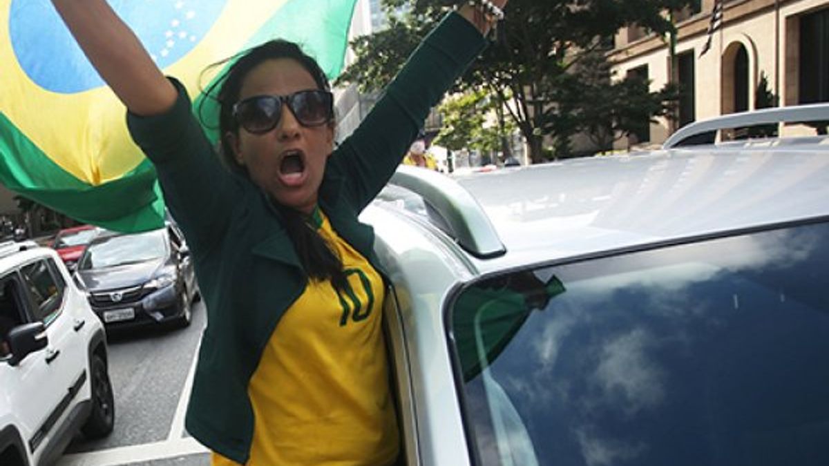 Sao Paolo’daki gösteriye katılanlar araçlarıyla yollara düştü. Ülke bayrakları açan göstericiler, attıkları sloganlarla kısıtlamaların sona ermesini istedi.