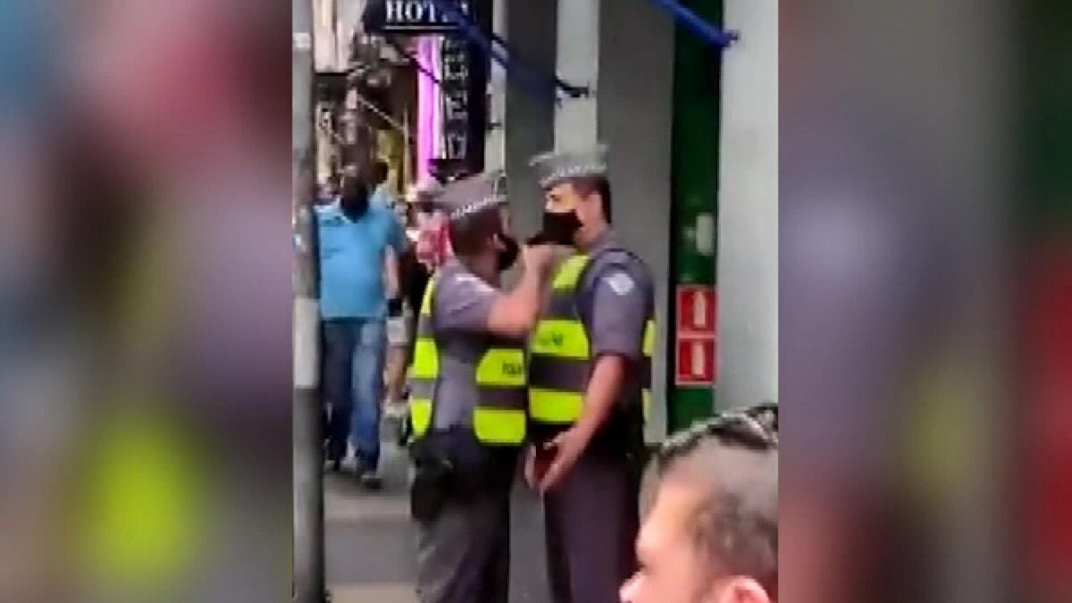 Brezilya'nın Sao Paulo kentinde Felipe do Nascimento adlı polis koronavirüs tedbirlerine ilişkin denetim yaptığı sırada öğle yemeğine giden meslektaşı Márcio Simão ile sokak ortasında tartıştı.