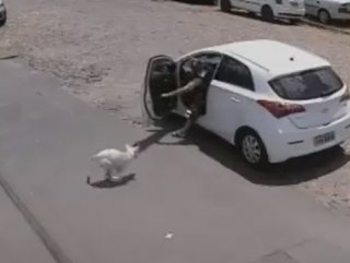 Brezilya'nın Porto Alegre kentinde, sakat kalmış köpeğini yolun kenarına terk eden kişi güvenlik kamerası tarafından görüntülendi.
