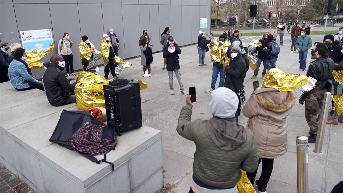 Belçika Kağıtsızlar Koordinasyonu'nun çağrısıyla toplanan grup, oturum başvurusundan cevap alamayan sığınmacıların dosyalarının görüşülmesi için çağrıda bulundu.