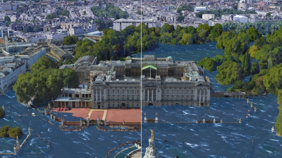 Küresel sıcaklıkların 3 santigrat derece artması durumunda önümüzdeki yüzyıllarda deniz seviyesinin yükselmesi sonucunda Buckingham Sarayı'nın, ikinci kata kadar su altında kalabileceği aktarıldı.