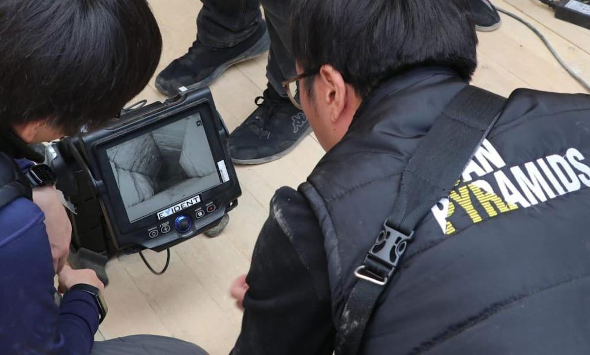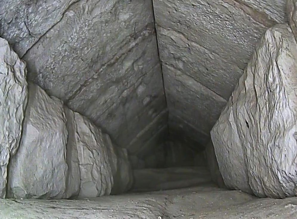 ScanPyramids Projesi'nden bilim insanlarının oluşturduğu ekip, ana girişin üzerinde 9 metre uzunluğunda, 2 metre genişliğinde gizli bir iç koridor tespit etti.