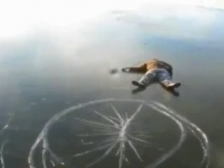 Görüntülerde, buz tutan göle hızla koşarak balıklama atlayan genç, buz kütlesini çatlattı. Çarpmanın etkisiyle uzun süre yerden kalkamayan çılgın, hedefine ulaşamadı.