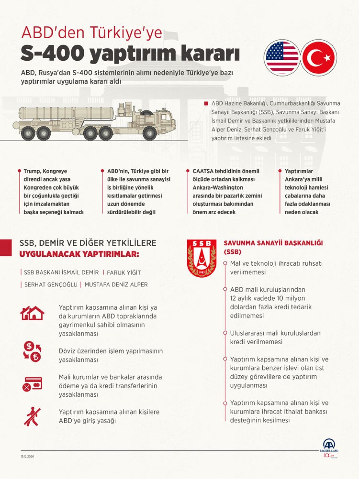 - Türkiye, S-400 alımı nedeniyle CAATSA yaptırımlarına maruz kaldı ve ABD Başkanının en az beş yaptırım seçerek uygulama yetkisi bulunuyor.