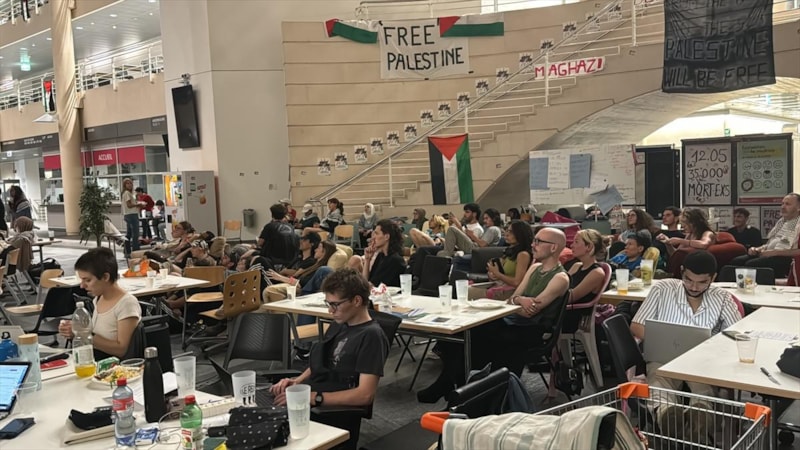 İsviçre'de 7 Mayıs'tan bu yana eylemlerini sürdüren öğrenciler, rektörlüğün uyarısını da protesto ediyor.