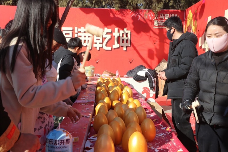 Vatandaşlar, yeni yılın ilk gününde ise şehirlerde kurulan geleneksel tapınak panayırlarını ziyaret etti. Başkent Pekin'de Ditan Parkı'nda kurulan yılbaşı panayırına yüzlerce kişi akın ederken açık havada aileleriyle vakit geçirdi.