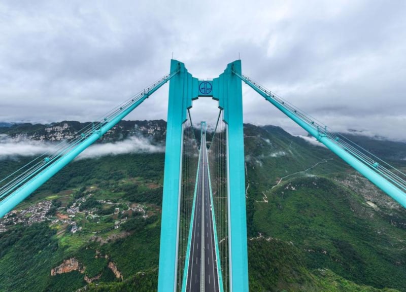 Guizhou'nun dağlık kesimindeki Beipan Nehri'nin 625 metre üzerinde yükselen Huajiang Büyük Kanyon Köprüsü’nün, San Francisco'daki Golden Gate Köprüsü'nden yaklaşık dokuz kat daha yüksek olduğu kaydedildi.