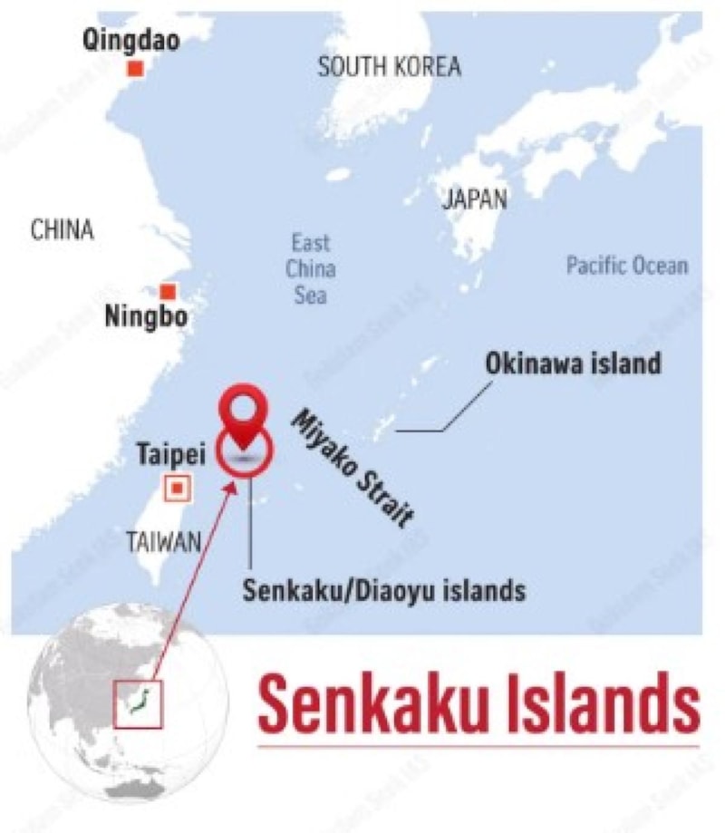 Japonya'nın "Senkaku", Çin'in de "Diaoyü" olarak adlandırdığı takımadalar, Çin'in doğu ve Japonya'nın güneybatı kıyılarında yer alan Doğu Çin Denizi'nde bulunuyor.
