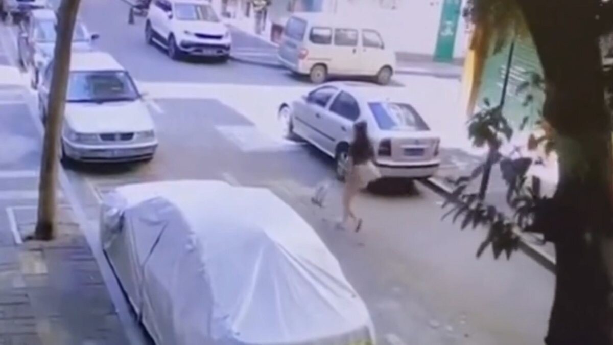 Durumu son anda fark eden kadın panik halinde koşup kurtulurken, ağaç park halindeki bir aracın üzerine devrildi.