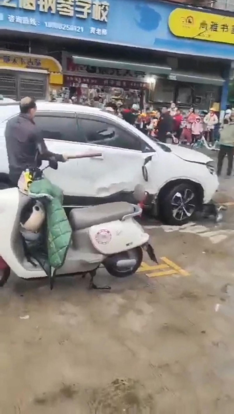 Çin’in Hunan eyaletindeki Changde şehrinde yer alan bir ilkokulun önünde, araç kalabalığa daldı.