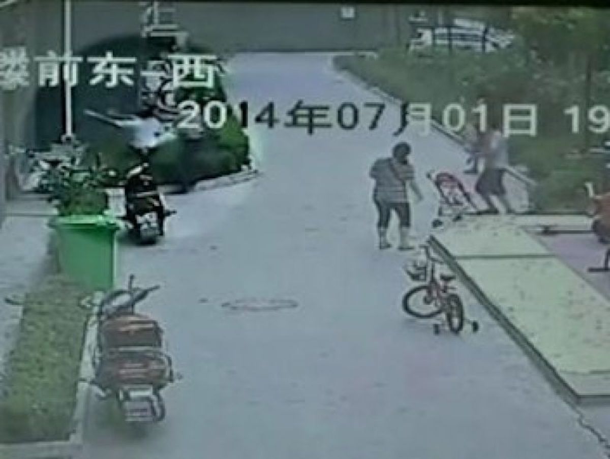Çin'de bir adam 8. kattan düşen kızı ölümden kurtardı