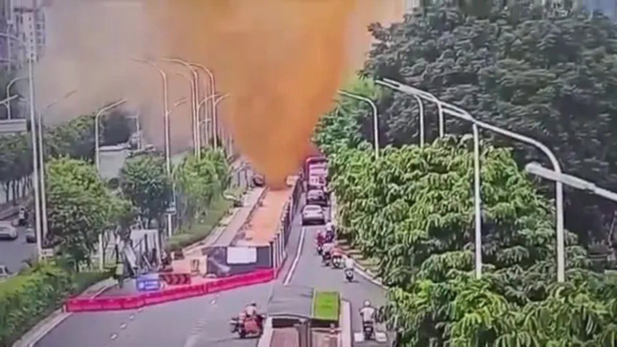Kaydedilen görüntülerde, patlayan dışkının 10 metre havaya sıçradığı ve sokaktaki bir ekskavatörü de devirdiği görüldü.