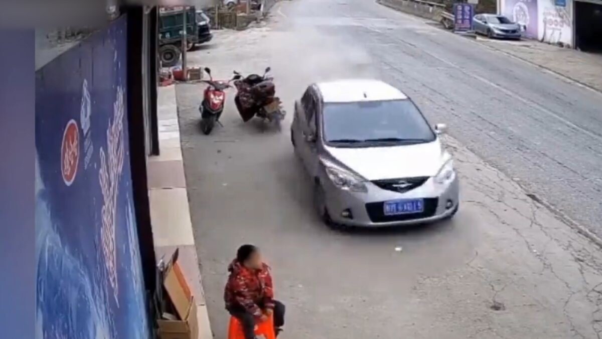 Çin'in Guangxi Zhuang Özerk Bölgesi'ndeki Hechi şehrinde hızla ilerleyen otomobil, kontrolden çıkarak bir dükkan önünde bulunan park halindeki araçlara çarptı.