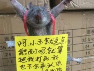 Öte yandan farenin boynuna asılan bir kağıtta "Yapabileceğiniz en iyi şey bu mu? Ölünceye kadar dövseniz de evinizdeki pirinci çaldığımı kabul etmem" yazdığı görülüyor.