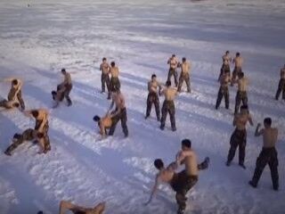 Çin'de polis kuvvetlerinin eğitimi en ağır şartlarda gerçekleşiyor. Polisler, bu eğitimlerde hem fiziksel kuvvete, hem de soğuğa karşı direnmek zorunda.