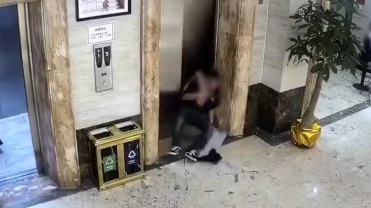 Çin'in Quanzhou şehrindeki bir otelde alkol alan ve sarhoş oldukları belirlenen iki adam, odalarına gitmeye çalışırken ayakta durmakta güçlük çekti.