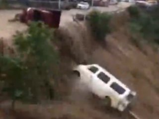 Sel nedeniyle iş yerleri ve sokaklar sular altında kalırken, sel suları araçları yamaçtan aşağı sürükledi. İtfaiye ekipleri, evlerinde ve iş yerlerinde mahsur kalanları botlarla kurtardı.