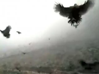 Yemek zamanının geldiğini anlayan kazlar, sesin geldiği yöne doğru koşarken tavuklar ise adeta uçuyor. Tavuklardan bazıları, o sırada kayıtta olan adama çarparken, bu anlar ise ilginç görüntüler oluşturuyor.