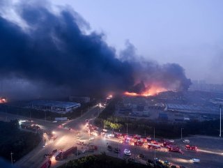 Bir lojistik firmasının kimyasal maddelerinın saklandığı depoda meydana gelen patlamanın sebebi açıklanmadı. Çin medyası nakliye sırasında patlayıcıların infilak etmesi sonucu facianın yaşandığını öne sürdü.