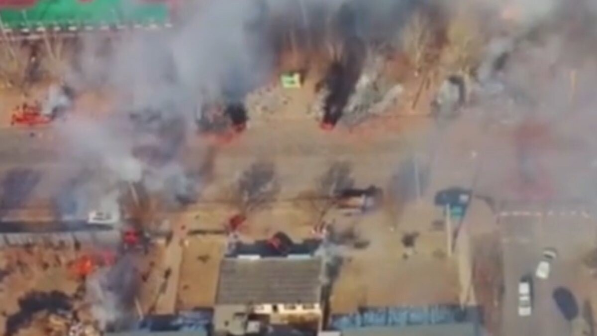 Çin'in Liaoning eyaletinin Panjin şehrinde bulunan havai fişek deposunda çıkan yangının ardından, büyük bir patlama meydana geldi.