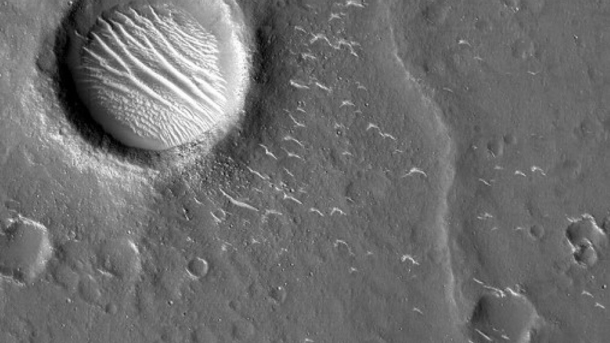 Mars’a 330-350 kilometre uzaklıktan çekilen 2’si siyah beyaz diğeri renkli fotoğraflarda, Mars yüzeyinin küçük kraterleri görüldü.