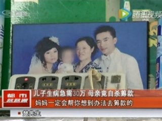 Çin'in Guangdong eyaletinin Shenzhen şehrinde yaşayan, ismi açıklanmayan 63 yaşındaki kadın, sigortasının hasta olduğunun tedavisini karşılaması için 9. kattaki dairesinin balkonundan atlayarak intihar etti. Hasta oğlu televizyona yaptığı açıklamada annesinin son sözlerinin; "Ben iyi olacağım. İhtiyacın olan parayı almanda sana yardım edeceğim." olduğunu açıkladı.