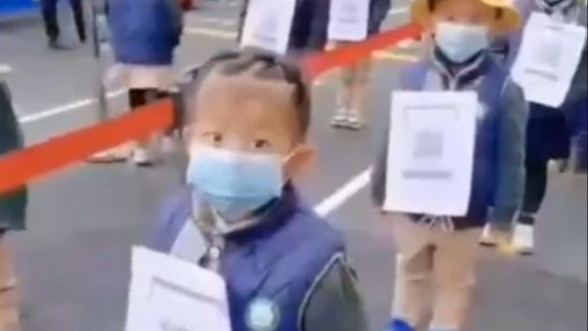 Test için sıraya giren Çinli anaokulu öğrencilerinin, boyunlarına QR kodu asıldığı görüldü. Sosyal medyada paylaşılan görüntüler, tepkileri beraberinde getirdi.