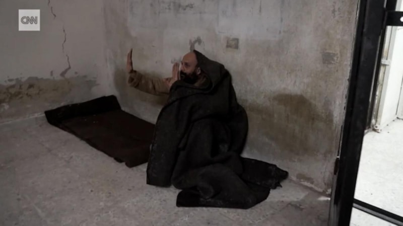 CNN' ekibinin Suriye'deki bir hapishanede battaniye altında bulduğu, sağlıklı ve temiz görünümüyle dikkat çeken Suriyelinin rejim istihbarat subayı olduğu ve üstleriyle gasptan pay alma konusunda anlaşmazlık yaşadığı için 1 ay önce tutuklandığı belirlendi.