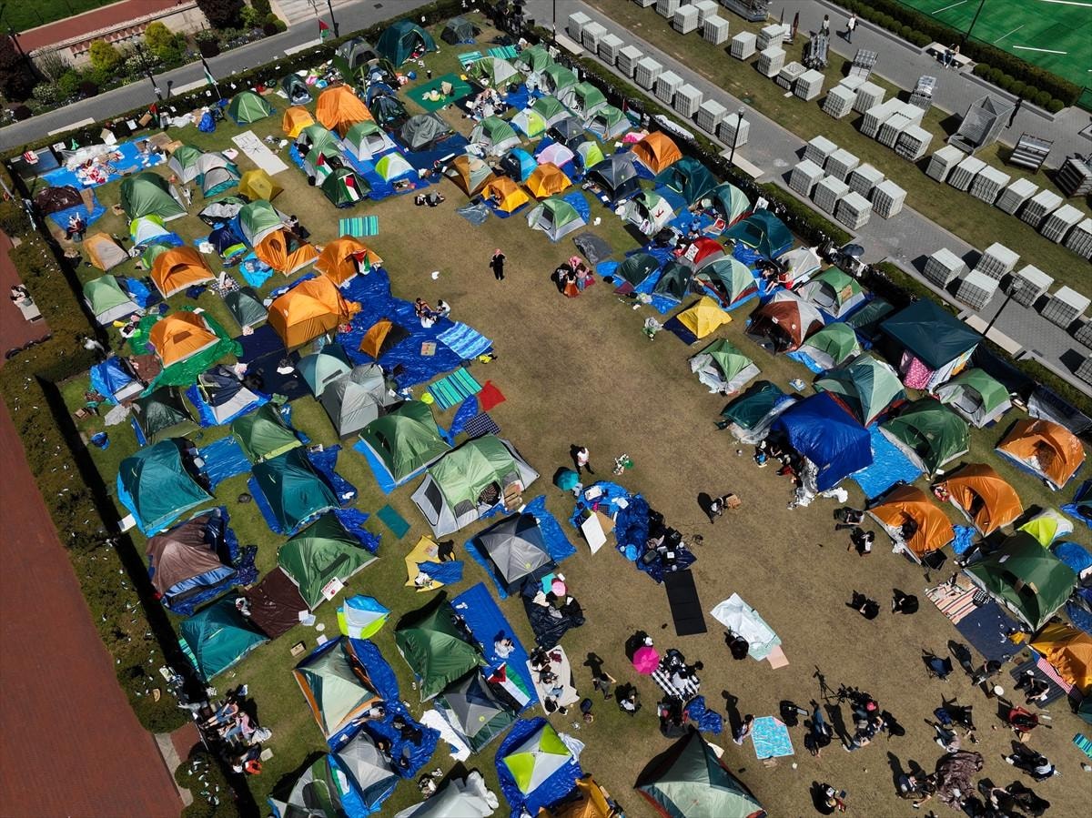ABD'de, İsrail'in Gazze saldırılarına tepki gösteren öğrencilerin eylemleri, üniversitelerde dalga dalga yayıldı.