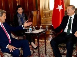 Cumhurbaşkanı Recep Tayyip Erdoğan, ABD Dışişleri Bakanı John Kerry'i, Washington Büyükelçiliği Rezidansı'nda kabul etti.
