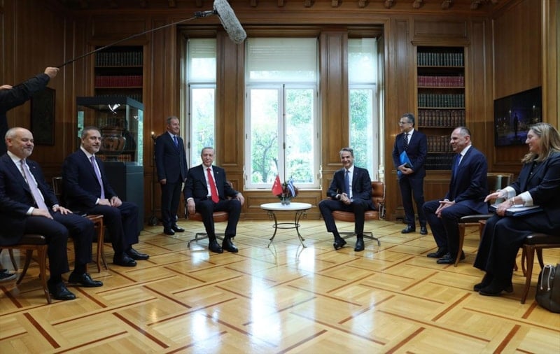 Sakelaropulu ile görüşen Erdoğan, ardından Yunanistan Başbakanı Kiryakos Miçotakis ile görüş alışverişinde bulunmak üzere Maximos Sarayı'na geçti.