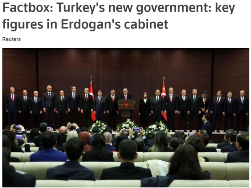 Reuters, "Türkiye'nin yeni hükümeti: Erdoğan'ın kabinesindeki kilit isimler" başlıklı bir habere imza attı.