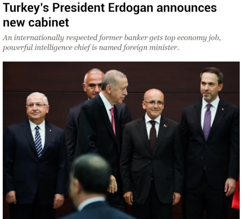 Aynı haberin devamında Hazine ve Maliye Bakanı Şimşek, "geniş çapta saygın ekonomist" şeklinde tanımlandı. Dışişleri Bakanı Fidan'dan ise şu şekilde söz edildi: