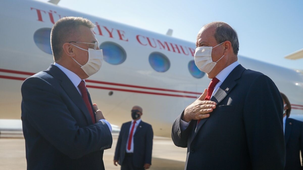 Cumhurbaşkanı Yardımcısı Fuat Oktay, Cumhurbaşkanı Tatar'ın yemin törenine iştirak etmek üzere KKTC'ye gitti.