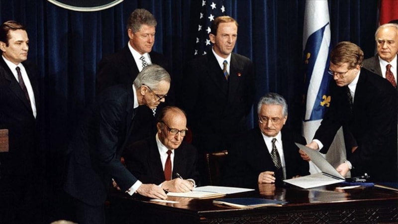 Bosna Hersek’te 6 Nisan 1992’de başlayan ve yaklaşık üç buçuk yıl süren savaş, 21 Kasım 1995’te ABD’de paraf edilen ve 14 Aralık 1995’te resmen imzalanan Dayton Barış Antlaşması ile sona erdi. Fransa’da imzalanan anlaşmaya Bosna Hersek Cumhurbaşkanı Aliya İzetbegoviç, Sırbistan Cumhurbaşkanı Slobodan Milošević ve Hırvatistan Cumhurbaşkanı Franjo Tuđman imza attı.